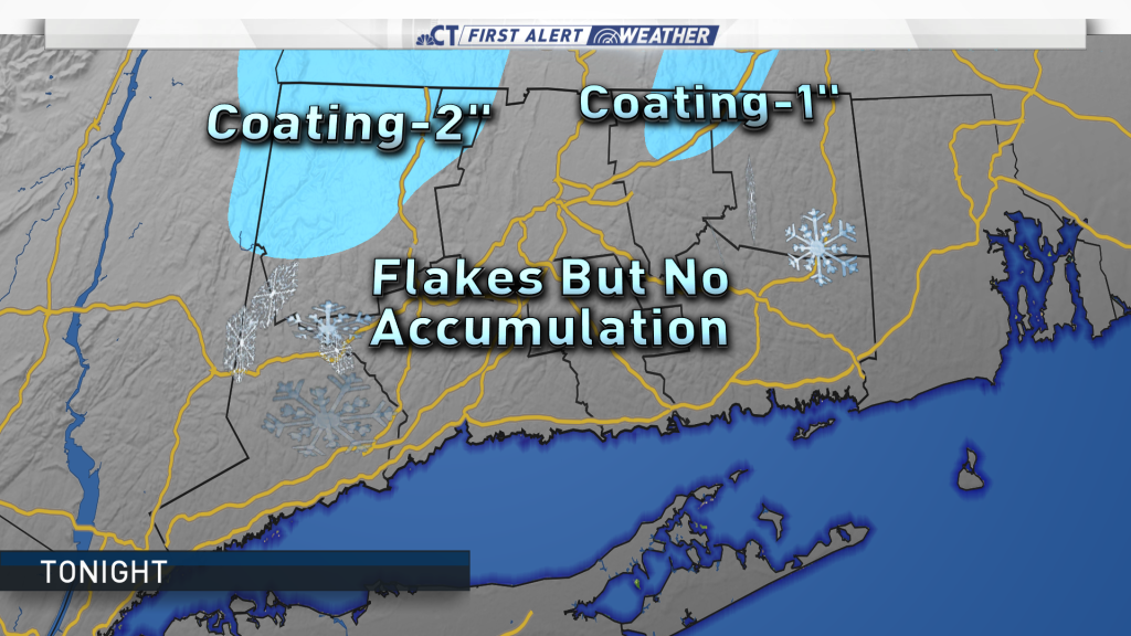 No accumulation is expected for most of the state besides a possible coating in the northwest hill.